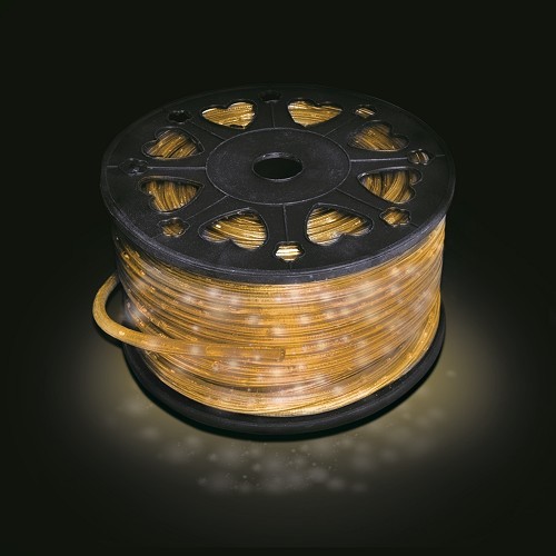 Светещ прозрачен маркуч /2 линии/. Жълти 5мм LED /диодни/ лампички. Размер 50м, (24бр. лампички на метър) Диаметър на маркуча 11мм. Рязане на 2м. Външна употреба. Максимална дължина на системата до 100м Максимална мощност на системата до 250W /ако използваният от вас захранващ кабел позволява/ 220-230V/50Hz/125W/(2.5W на метър)IP44 1/1