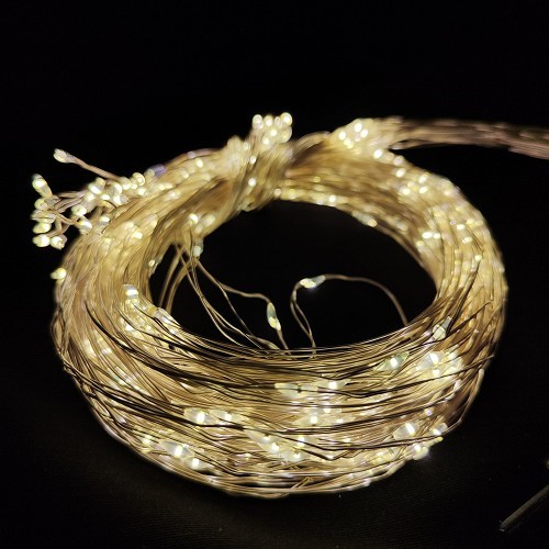 Каскада КУПЪР: 400 топло бели LED микро /диодни/ лампички. Сребриста медна жичка. Размер 2.0м (20 броя висулки), захранващ кабел 1.5м, с GS трансформатор 6V/1А. Постоянен режим на светене. Външна и вътрешна употреба. 220-230V/50Hz/3.5W/IP44 3/4/1
