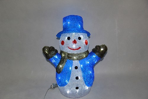 Снежен човек син - акрилна фигура Размер H40см, 50 бели LED /диодни/ лампички. Захранващ кабел 1.5м, с трансформатор. Постоянен режим на светене. Външна употреба. 220-230V/50Hz/3W/IP44