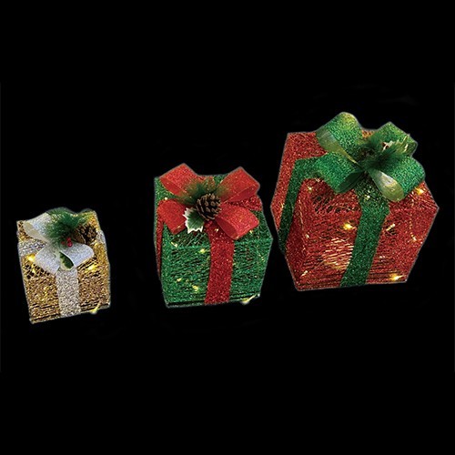 Светещи подаръци,червен,зелен,златен,48 т/бели LED