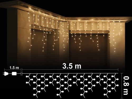 Висулка: 300 топло бели 5мм RICE /оризови/ лампички. Прозрачен кабел. Размер 3.5м*0.8м, (36 броя висулки) Захранващ кабел 1.8м. Контролер за промяна режима на светене с 8 функции. Вътрешна употреба. 220-230V/50Hz/70W/IP20 6/1