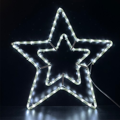 Двойна звезда - размер L55/H55см,150 бели LED /диодни/ лампички /3м маркуч/ Външна употреба. 230V/50Hz/7.5W/IP44