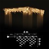 Висулка: 120 топло бели 2700К LED /диодни/ лампички. Черен каучуков кабел, Ф3.3мм2, с конектор за свързване. Размер 4м*0.4м. (4 сегмента по 1м., 36 броя висулки, 9 висулки на сегмент) Захранващ кабел 1.5м. /ET560B-20 или ET560W-20/ Постоянен режим на светене. Външна употреба. Максимална дължина на системата при свързване 80м /до 20бр. х 4.0м. последователно свързани изделия от същия тип/ Максимална мощност на системата при свързване 370W /до 20бр. х 18.5W последователно свързани изделия от същия тип/ /ако използваният от вас захранващ кабел позволява/ 220-230V/50Hz/18.5W/IP44 6/1