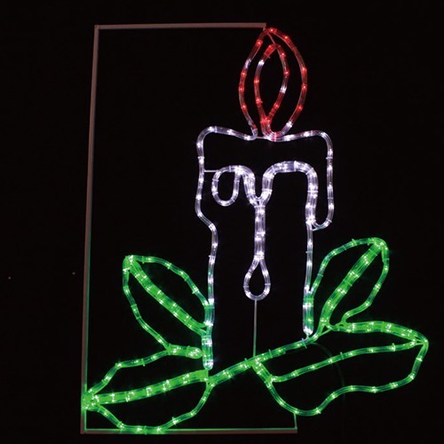 Свещ - размер L79/H96см, 204 червени, бели и зелени LED/диодни лампички + флаш /24 LED на метър/ /8.5м маркуч/. Диаметър на маркуча 11мм. Захранващ кабел 5м, с трансформатор на 24V. Постоянен режим на светене. Външна употреба. IP44/230V/50Hz/10.2W